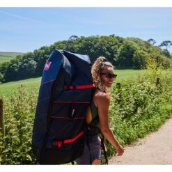 New for 2022 – ATB Transformer bag:ย Introducing a total redesign of the Red Paddle Co all terrain backpack that offers a bagless carry system. This skeleton system means you can access more remote waterways without the need for a bulky bag and just take the straps and your pump. When using the bag, the large all terrain wheels make handling rugged terrain a breeze and considered anthropometric design is able to be fully customised to your height so you can take maximum care of your body while under load. Large exterior pockets can fit any quick to grab essentials and a velcro interior pocket means your paddle blade is safe and secure. The interior material has a stylish Red repeater pattern and its water resistance will minimise any intrusive damp. Additional internal storage for small items and keeping your service kit on hand.